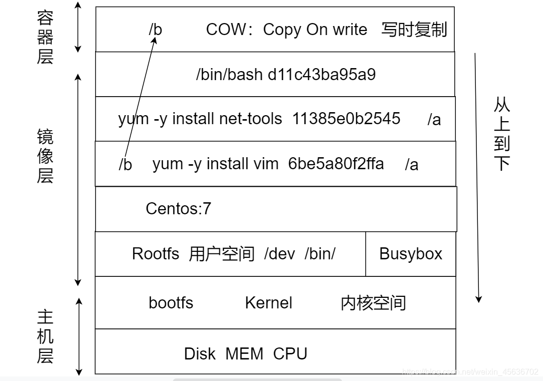 镜像是容器的基石,容器是镜像运行后的实例,当镜像运行为容器之后,对镜像的所有数据仅有只读权限,如果需要对镜像源文件进行修改或删除操作时,此时是在容器层(可写层)进行的,用到了COW(copy on write)写时复制机制