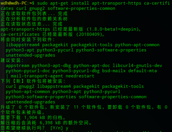 安装 apt 依赖包,用于通过 HTTPS 来获取仓库。