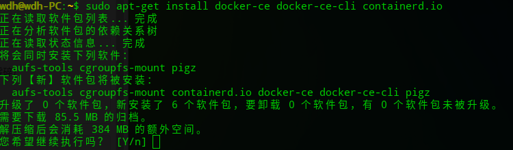 $ sudo apt-get install docker-ce docker-ce-cli containerd.io