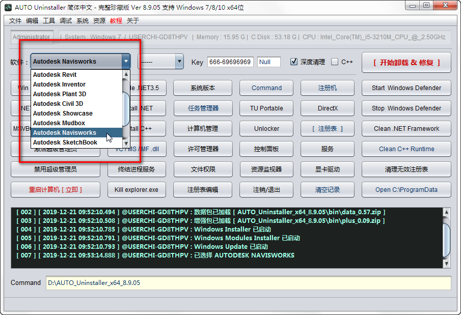 Autodesk卸载工具是专门为了针对Autodesk类软件卸载不干净而导致Autodesk安装失败问题进行研发的Autodesk一键卸载工具。现在虽然360或一些卸载软件提供了强力卸载Autodesk的工具,可以将Autodesk注册表和一些Autodesk目录的Autodesk残留信息删除,但仍不能确保将Autodesk所有相关程序文件和注册表全部彻底删除。也查过网上关于如何卸载Autodesk的一些文章,是说删除几个Autodesk文件和Autodesk软件注册表就可以了,情况并没有这么简单。Autodesk安装时产生了几万条注册表,想要彻底卸载Autodesk软件,就有几万条Autodesk注册表要删,非人力所能为。Autodesk安装失败还和C++版本问题有关,因为每个版本的Autodesk都是基于一定版本的C++版本而开发的。上面说了这么多,只是两种最常见的情况。这里介绍一个Autodesk卸载工具,专门用来解决卸载修复Autodesk类软件卸载安装失败的问题。Autodesk卸载工具会自动执行一系列问题的排查和修复,极大的节省了排除安装Autodesk失败问题的时间。