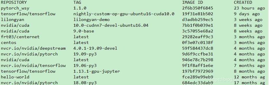 仔细观察我们发现(箭头),“:”前对应REPOSITORY,后对应TAG,也就是说,这两个参数为你使用的REPOSITORY的name和TAG即 REPOSITORY‘name:TAG
