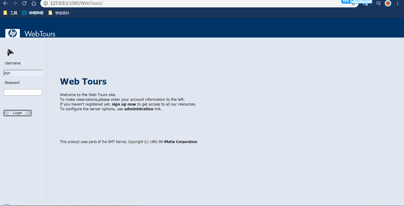 - 访问地址:http://127.0.0.1:1080/WebTours/(HP Web Tours Application)