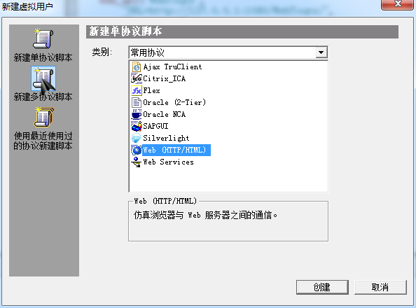 (1)打开VuGen程序->新建脚本Web(HTTP/HTML)