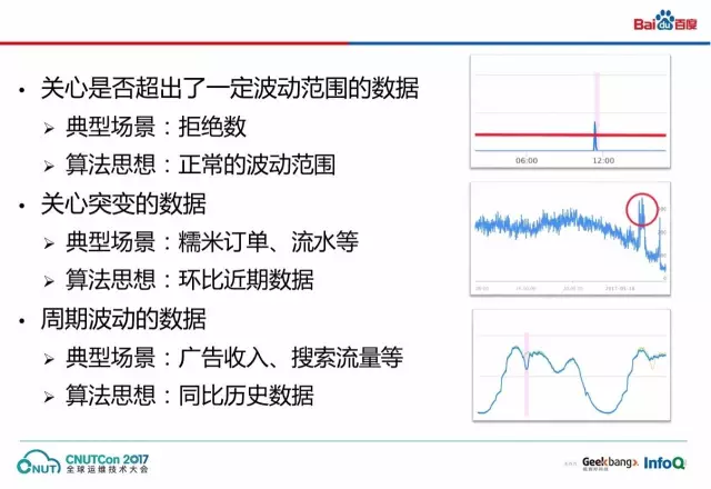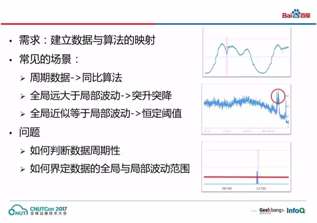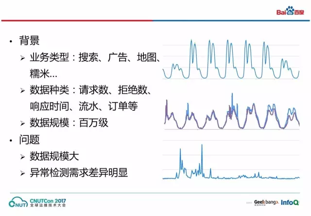 自动异常检测旨在发现复杂业务指标(请求量、收入等)的异常波动,是智能监控系统中的重要环节。百度的业务种类繁多,各业务的监控需求迥异,参数配置成本繁重,给异常检测带来了巨大的挑战。本文整理了运小博在 2017CNUTCon 全球运维技术大会上分享的《百度大规模时序指标自动异常检测实战》和在 CCF TF“人工智能时代的互联网运维”主题研讨会中分享的《百度智能运维实践之异常检测》的内容。主要介绍百度运维部 IOP 团队开发的自动异常检测系统及其核心技术能力,并重点讨论了大规模时序异常检测参数配置成本高的问题。演讲展示了三种常用异常检测算法及其适用场景,并基于此讨论了算法的自主选择策略,以及每种算法的参数自动配置方法。