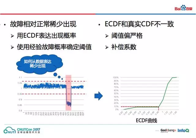 实际使用中,因为历史数据样本有限,ECDF 与真实 CDF 有一定差距,直接使用容易有较多误报,我们使用了补偿系数解决这个问题。