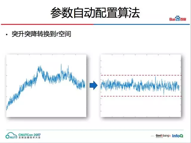刚才介绍了恒定阈值算法的自动配置参数过程,突升突降算法自动配置参数也是类似的,我们可以利用前文提到的空间转换公式把原始数据转换到 r 空间,然后在 r 空间上配置恒定阈值。除了 r 空间上的阈值之外,还有窗口大小 w 需要设置,不同曲线一般不会有太大区别,我们就不自动设置了。