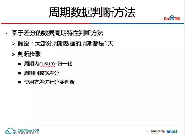 我们提出了一种基于差分的数据周期特征判断方法。先将临近的两天数据做差分,如果是周期数据,差分后就可以消除掉原有数据的全局波动,然后结合方差的阈值判断就可以确定数据是否有周期性。实验发现,不同天的数据有一定的上下浮动,因此差分之前可以先对数据做归一化。