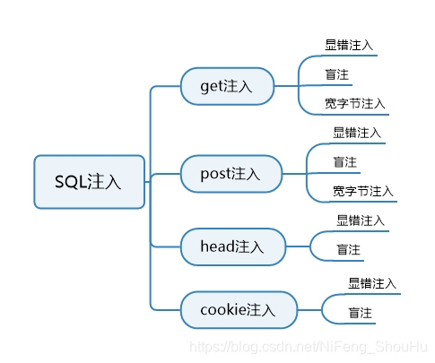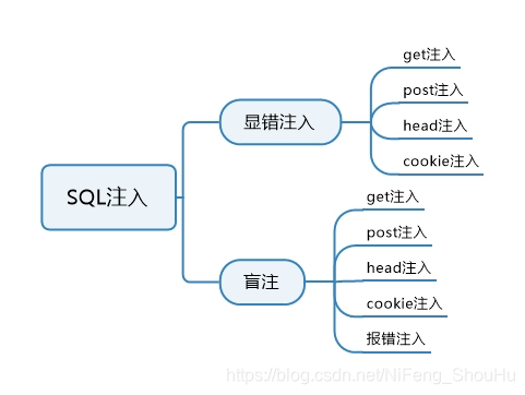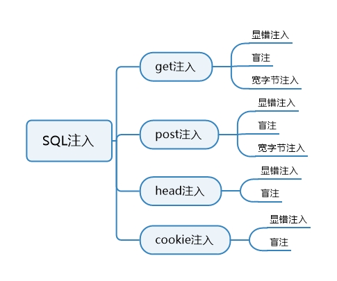 而里面有两种奇怪的注入,那就是宽字节注入和报错注入,宽字节属于get注入跟post注入,而报错注入属于盲注的一种。