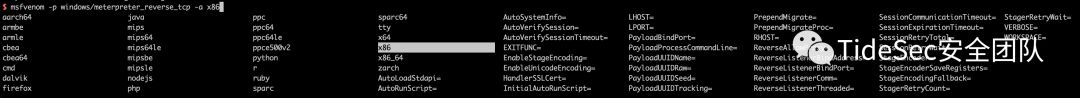 比如想查看windows/meterpreter/reverse_tcp支持什么平台、哪些选项,可以使用msfvenom -p windows/meterpreter/reverse_tcp --list-options
