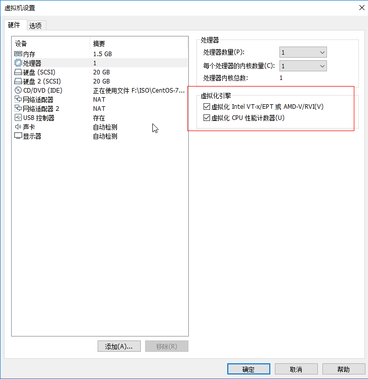 Vmware虚拟机centos需要开启cpu虚拟化支持: