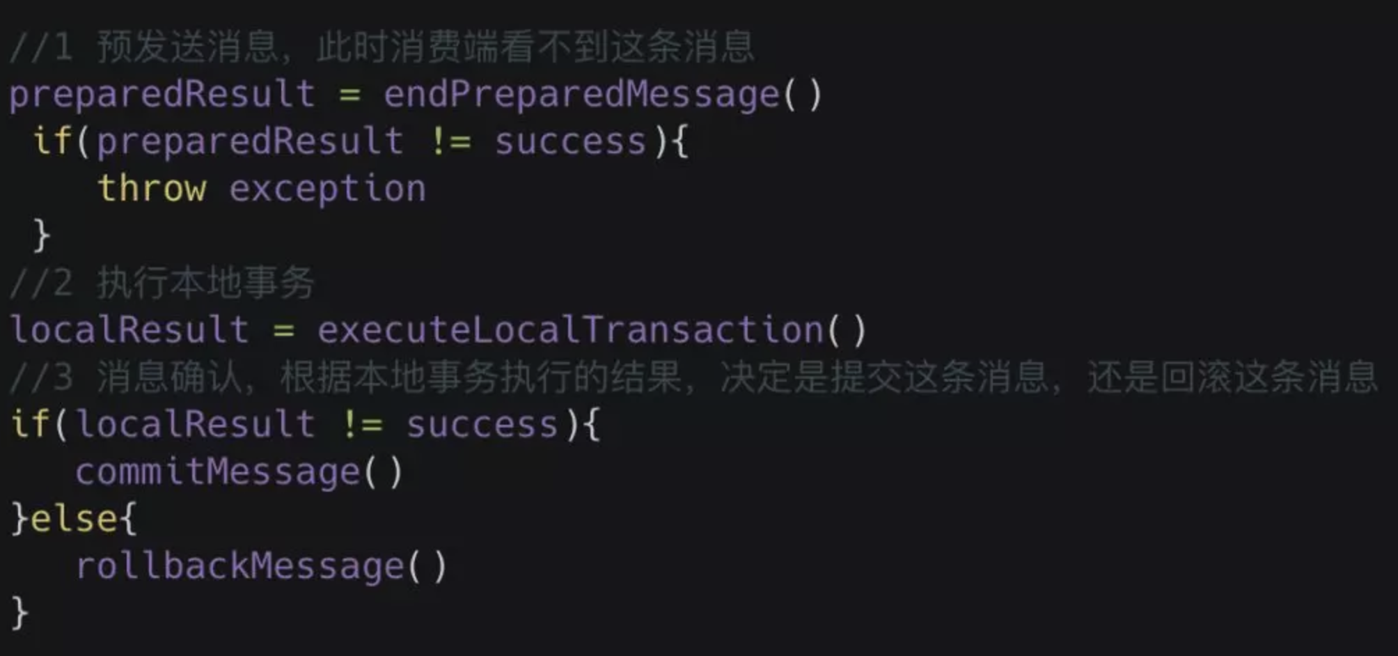 - 预发送消息到mq,消费者是看不到此消息的,因此不会进行消费