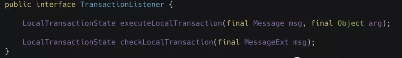发送prepare消息之后,需要执行本地事务,需要实现RocketMQ提供的一个TransactionListener 接口方法完成。