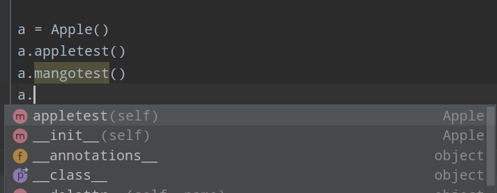 Once I type a. I can see appletest but not mangotest as my tip. How can i achieve it in my editor ?