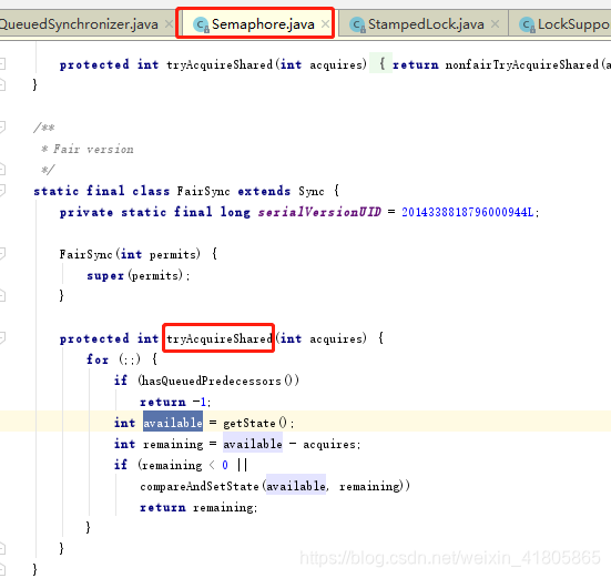 而acquire的方法实现在了Semaphore中