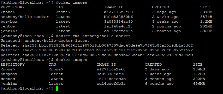 在重新build镜像之前,这里插入一个docker命令的学习。就是如何删除Image, 这里说一下,删除容器是docker rm container, 删除镜像是docker rmi image。