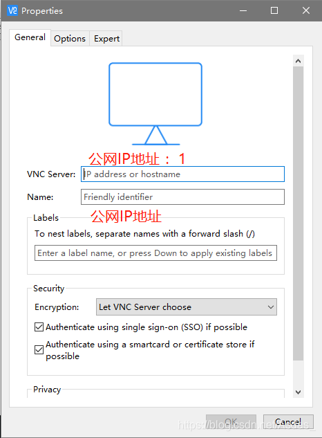 - 本地安装完VNC后,打开软件,File —— New connection ,