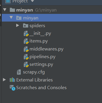 - 指定文件夹目录创建项目,cmd进入文件夹路径,使用命令: scrapy startproject 项目名