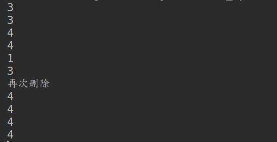 2.对于删除元素后面的迭代器可以理解为,删除某元素之后,所有元素错位,最后一个元素删除。