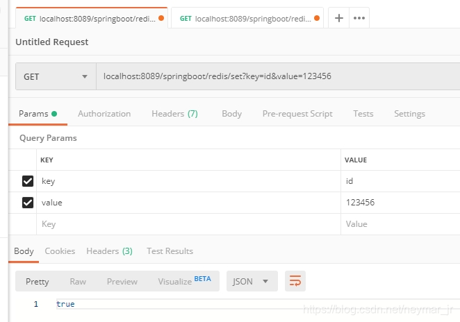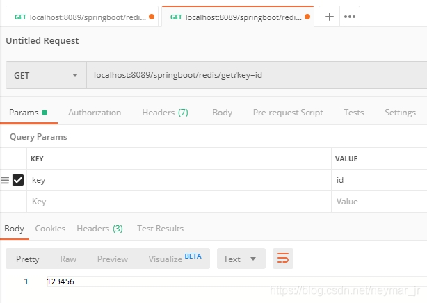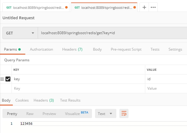 (5)输入 localhost:8089/springboot/redis/set?key=id&value=123456 和localhost:8089/springboot/redis/get?key=id 来测试