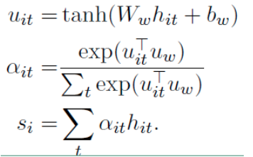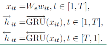整个网络结构由双向GRU网络和注意力机制组合而成,具体的网络结构公式如下: