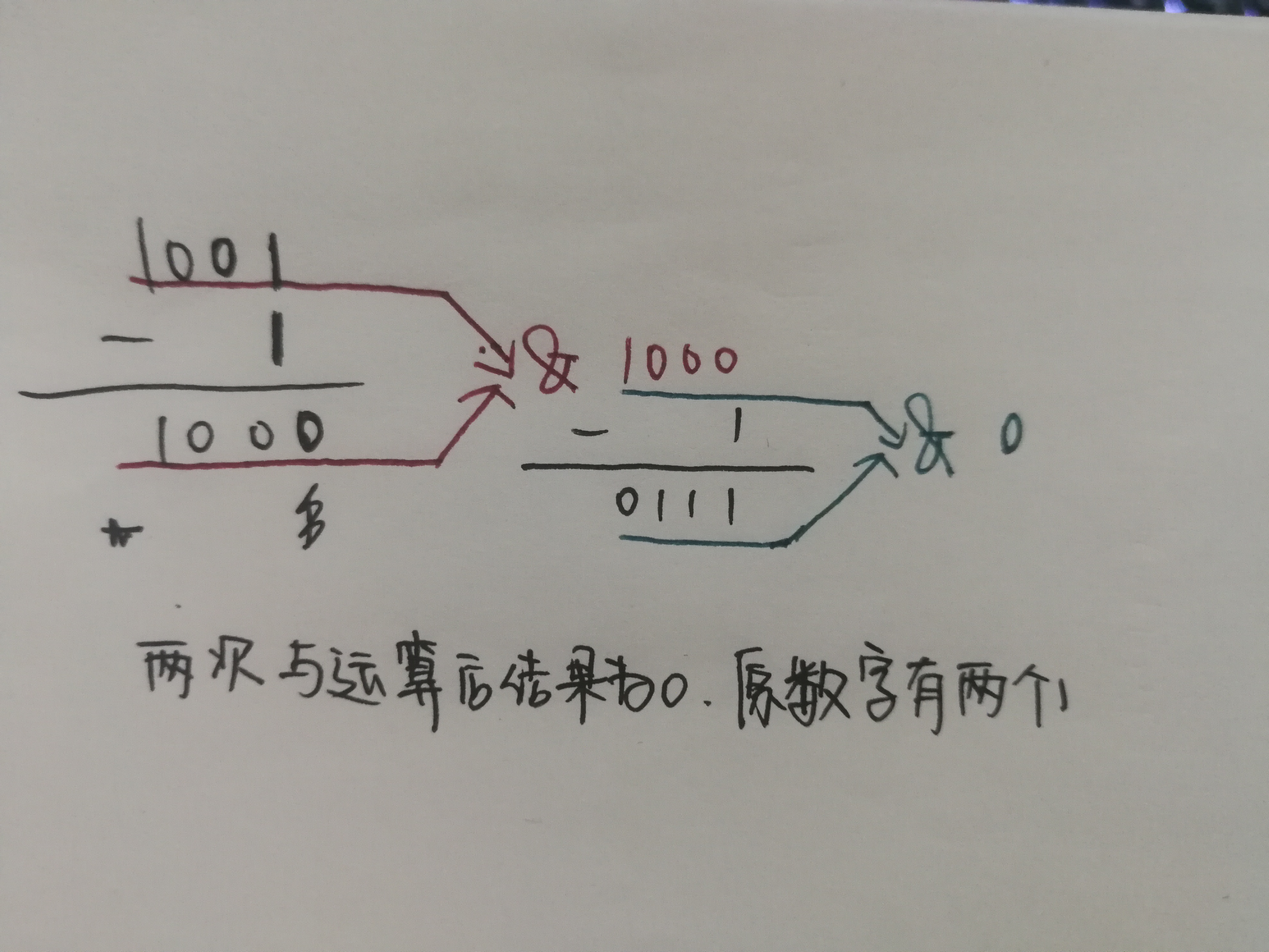 3.将原数字减1后与原数字做与运算,直至与运算结果为0。