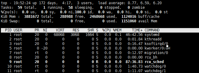 4 发现有两个进程 一个 scsi_eahc_1s cup 爆满,和 9432671f5d kill 掉。