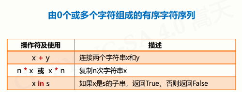 - 字符串是字符的有序序列,可以对其中的字符进行索引
