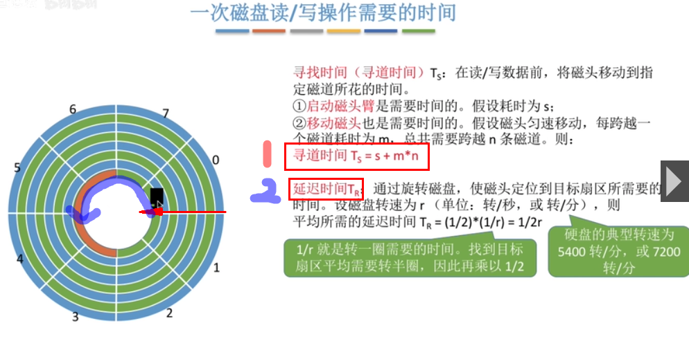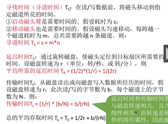 寻道时间=磁臂启动时间 + 磁头跨越一个磁道的时间 × 跨越磁道的个数