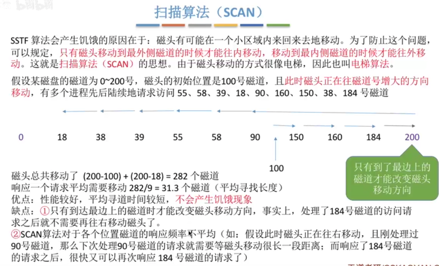 注意:必须是移动到最边界200才能回头,即使184-200之间没有请求了,也不能掉头,必须到200才掉头