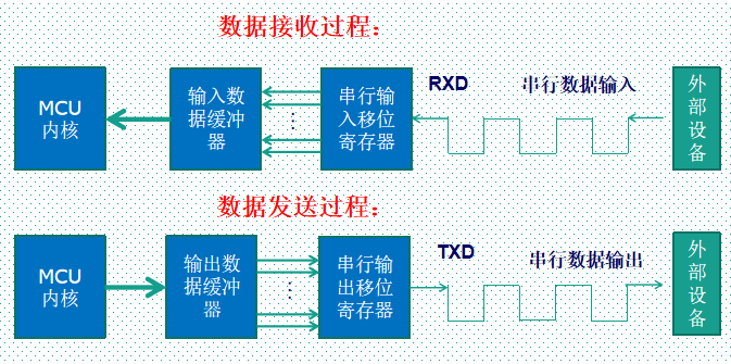 检测标志:① 接受缓冲器 ②发送缓冲器空 ③传输结束标志