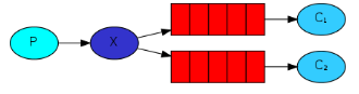 这种方式是通过交换器来实现的,说到这里就必须知道交换器exchange的四种类型:fanout、direct、topic、header。我们先说下fanout类型,其他3种后面一次介绍。通过fanout定义的交换器,只要有队列queue与该交换器exchange进行了绑定操作,那么所有发送到该交换器exchange的消息都会被与该exchange绑定的queue所接收,这个与队列的名称绑定无关,队列名称的绑定只是用于消费者而已。
