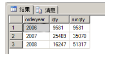 SELECT Cur.orderyear, Cur.qty AS curyearqty, Prv.qty AS prvyearqty