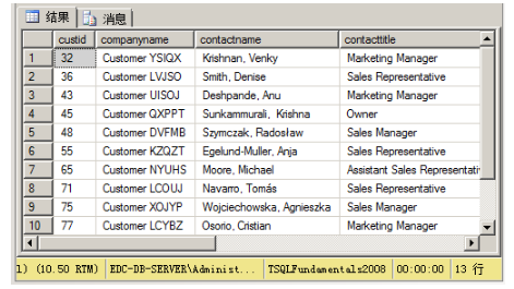 如果搜索包含特殊通配符的字符串(例如'%','_','['、']'等),则必须使用转移字符。下面检查lastname列是否包含下划线:
