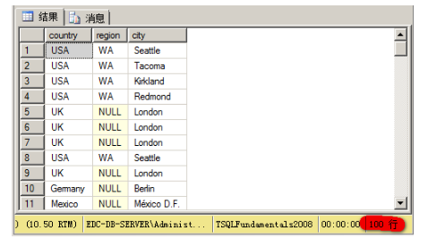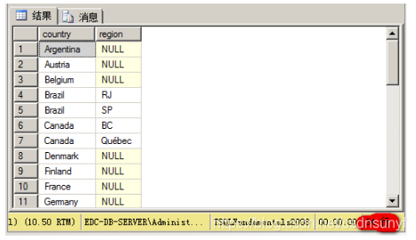 另外,T-SQL对于NULL值得处理是先输出NULL值再输出非NULL值得顺序,如果想要先输出非NULL值,则需要改变一下排序条件,例如下面的请求: