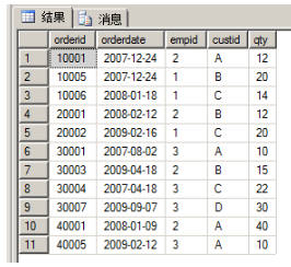 SELECT TOP (5) WITH TIES orderid, orderdate, custid, empid