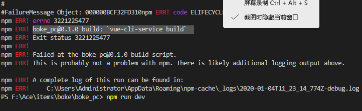用vue cli3.0生成vue项目时,运行项目出现报错build: `vue-cli-service build`,serve: `vue-cli-service serve`
