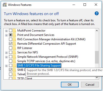 从Windows 10 Fall Creators Update SMBv1开始,默认情况下将被禁用。