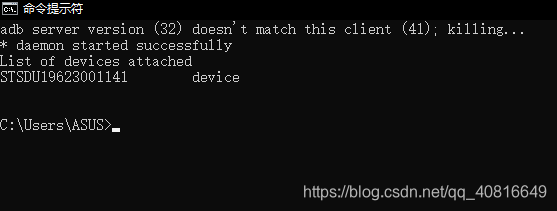 完成之后重启android studio,连接上手机设备并启动cmd输入adb devices(手机要调成开发者模式)