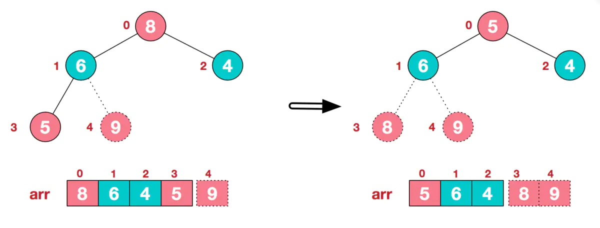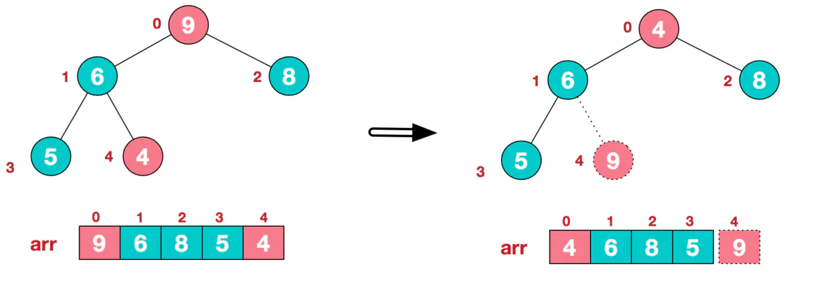 b.将堆顶元素与末尾元素交换,将最大元素"沉"到数组末端;