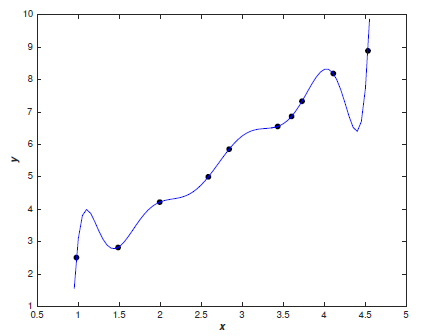 直观来看第一种线性模型会好一些。而后面的的非线性模型除了学习了有效信息外,还学习了数据中包含的噪声。从另一个角度说,也可以认为是模型的学习能力太强导致的(或者可供学习的样本太少)