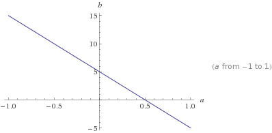 由于b=5-10a,所以参数a,b的解有无数解(如下图蓝线)