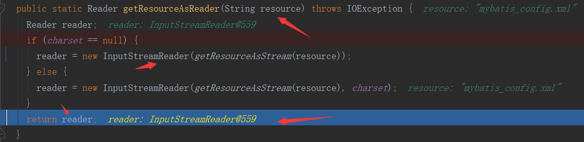 1.读取resources获取对应的Reader对象,进入getResourceAsReader(resources)源码片段