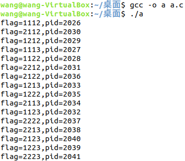 printf("flag=%d,pid=%d\n",flag,getpid());