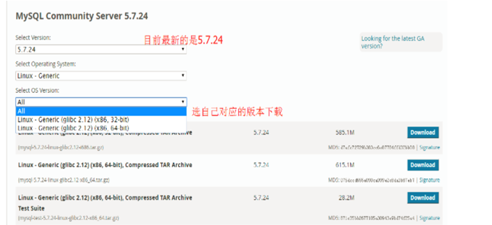 wget https://cdn.mysql.com//Downloads/MySQL-5.7/mysql-5.7.24-linux-glibc2.12-x86_64.tar.gz(用这个,后续的步骤都一样)