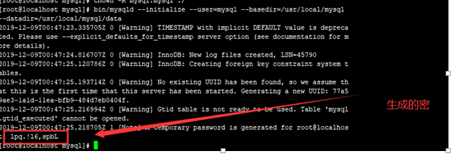 安装数据库 bin/mysqld --initialize --user=mysql --basedir=/usr/local/mysql --datadir=/usr/local/mysql/data