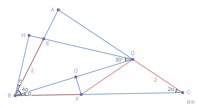 解:作BF−FD−DC三折腰,作FG⊥BD于G,BH⊥DE延长线于H