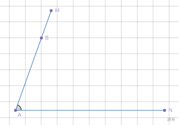 角的一边AN与水平方向的网格线平行,另一边AM经过格点B,AB=2.5cm.