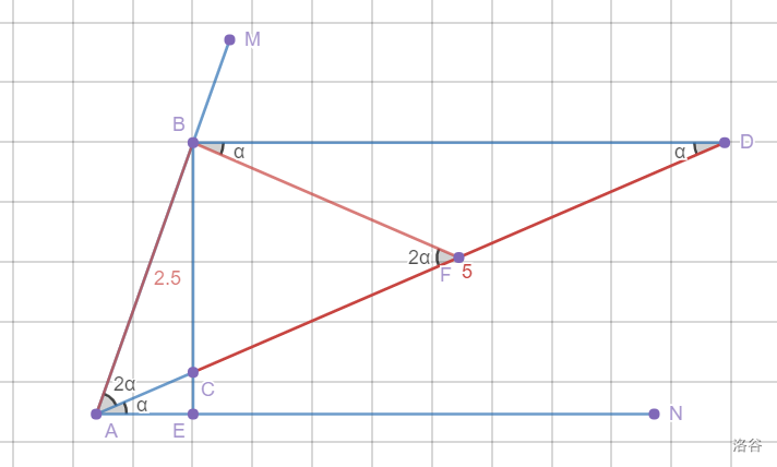 设∠FBD=∠FDB=α,则∠BFA=∠BAF=2α