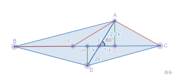 设HE=x,则ED=2x,AE=2−2x,EG=1−x,HG=HE+EG=x+1−x=1