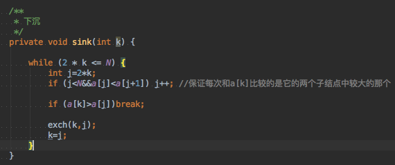 if (j<N&&a[j]<a[j+1]) j++; //保证每次和a[k]比较的是它的两个子结点中较大的那个